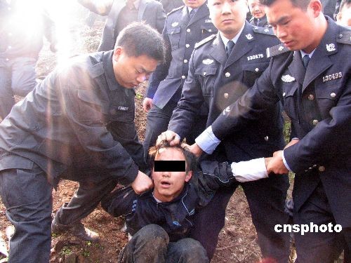 3月19日,婁底市公安局婁星分局民警抓獲殺害治安巡邏隊員譚靜宇的犯罪嫌疑人鐘倫慧。 中新社發(fā) 郭國權 攝