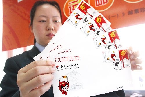 圖:中國(guó)發(fā)行“奧運(yùn)火炬接力”郵品
