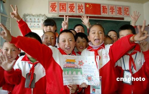 3月27日,拉薩市城關(guān)區(qū)吉崩崗小學(xué)四年級的學(xué)生表達熱愛祖國反對分裂的心情。拉薩“3.14”打、砸、搶、燒暴力事件發(fā)生后,西藏各界以各種方式紛紛表達對暴亂分子殘忍罪惡行徑的痛恨。中新社發(fā) 周波 攝