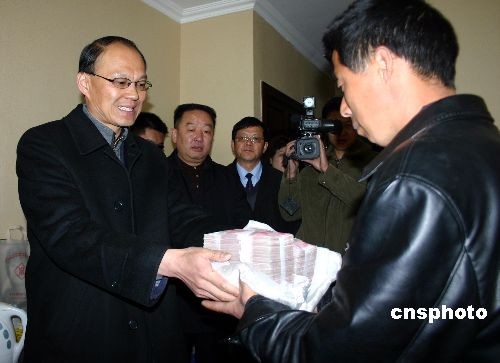 從3月30日起,西藏自治區(qū)政府將陸續(xù)向“3·14”打、砸、搶、燒嚴(yán)重暴力事件中無辜喪生者家屬發(fā)放特殊撫恤金,金額為每人二十萬元人民幣。圖為3月30日西藏自治區(qū)政府官員正在向無辜喪生者家屬發(fā)放特殊撫恤。中新社發(fā) 鄒輝 攝