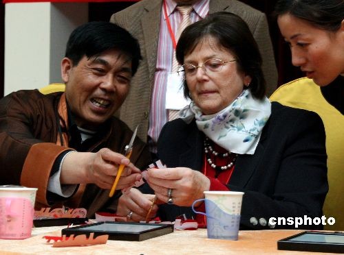 圖:羅格夫人京城百工坊學(xué)剪紙