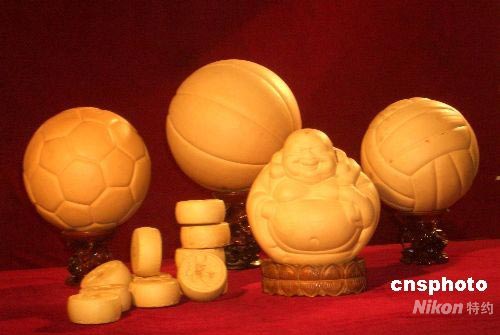 中新網(wǎng)北京四月十五日電 (王歡)中國農(nóng)民用先進(jìn)科技培育出的世界上獨(dú)一無二的足、籃、排三大球造型葫蘆,今天在北京國際會議中心亮相,他們的培育者查泰山將這些“葫蘆”工藝品贈送給中國體育博物館,表達(dá)了中國億萬農(nóng)民對北京奧運(yùn)會的祝福和期盼。