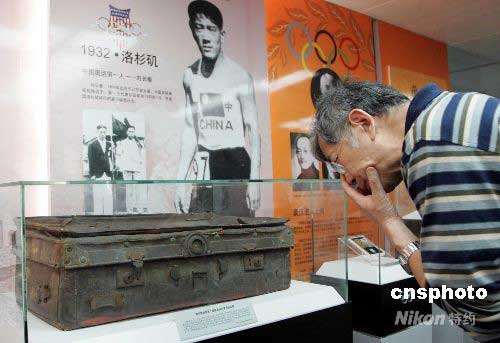 5月6日,在即將閉幕的“奧林匹克—上海記憶”展覽上,許多市民爭睹該國寶級的“奧運(yùn)皮箱”。張學(xué)良將軍贈(zèng)送給“中國奧運(yùn)第一人”劉長春參加1932年洛杉磯奧運(yùn)會(huì)時(shí)攜帶的皮箱,正成為上海時(shí)尚展品。中新社發(fā) 潘索菲 攝