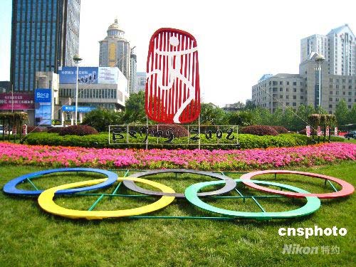 近日,隨著奧運(yùn)圣火“祥云”在國(guó)內(nèi)的傳遞,南京街頭、公園、學(xué)校喜迎奧運(yùn)的氛圍也越來越濃。圖為園林部門在鼓樓廣場(chǎng)利用花草樹木和奧運(yùn)會(huì)會(huì)徽、奧運(yùn)五環(huán)組成的奧運(yùn)主題中心花園成了十分醒目的靚麗景觀。中新社發(fā) 谷昌旺 攝