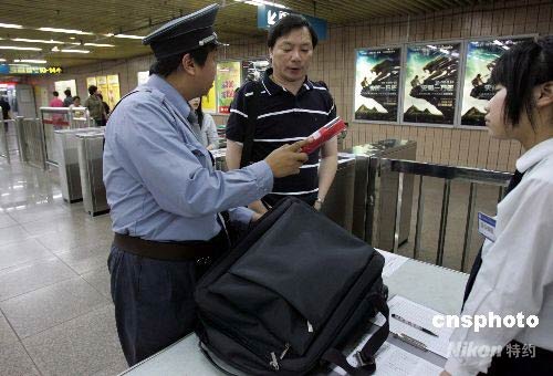 5月10日上午,在上海徐家匯地鐵站的安全檢查通道,一乘客因攜帶危險(xiǎn)物品被勸說(shuō)退票。從今天起,上海軌道交通所有車(chē)站開(kāi)辟專(zhuān)用安全檢查通道,由專(zhuān)人全天候逐一對(duì)乘客攜帶的箱包進(jìn)行安全檢查,據(jù)了解,從4月15日至今,上海軌交查堵危險(xiǎn)品1200余件。主要有液化氣鋼瓶、煙花、油漆、裝修膠水等,其中,依法對(duì)700余名違法攜帶危險(xiǎn)物品的人員依法做出行政處罰。中新社發(fā) 潘索菲 攝