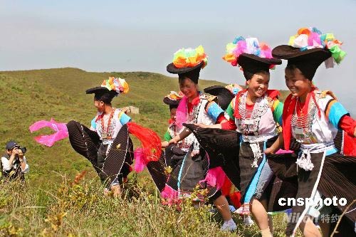 5月11日,是貴陽市苗族同胞農(nóng)歷“四月八”的傳統(tǒng)節(jié)日。貴陽市數(shù)千苗族同胞身著節(jié)日盛裝,聚集在貴陽市花溪區(qū)高坡鄉(xiāng)云頂村草場載歌載舞,歡慶一年一度的苗族節(jié)日。小伙子們吹起歡快的蘆笙,姑娘們跳起苗族的花綢舞,盡情的對歌談心,祈求今年風(fēng)調(diào)雨順,五谷豐登。中新社發(fā) 彭年 攝