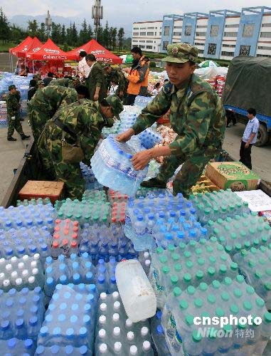 圖:四川地震災(zāi)區(qū)救援物資及時(shí)發(fā)放