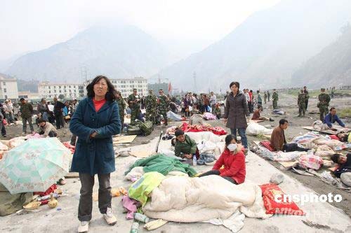 圖:汶川縣重傷災(zāi)民等待救助