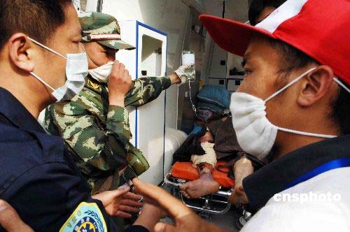 圖:解放軍在北川地震重災(zāi)區(qū)救出幸存者