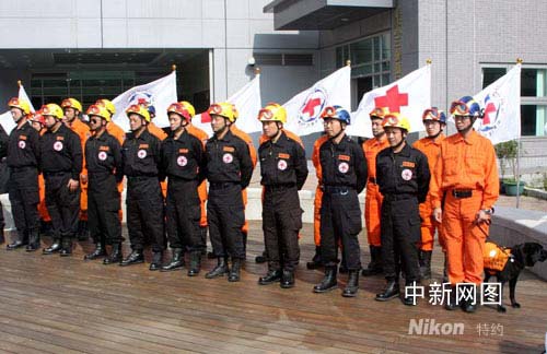 圖:戎裝即發(fā)的臺灣紅十字組織搜救隊(duì)