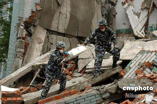 5月16日, 2750名海軍陸戰(zhàn)隊(duì)官兵分三個(gè)梯隊(duì)相繼順利到達(dá)四川地震災(zāi)區(qū),立即展開(kāi)救援行動(dòng)。第一梯隊(duì)到達(dá)綿竹縣漢旺鎮(zhèn)的760名官兵在災(zāi)情最嚴(yán)重的地方進(jìn)行搶險(xiǎn)救援,并在救援中使用了生命探測(cè)儀。目前,世界上只有美國(guó)和英國(guó)有這樣的生命探測(cè)儀,地震災(zāi)區(qū)中海軍官兵使用的是中國(guó)自行研制的,僅在漢旺鎮(zhèn),他們就有5臺(tái)這樣的儀器。圖為海軍陸戰(zhàn)隊(duì)官兵在四川綿竹縣漢旺鎮(zhèn)使用生命探測(cè)儀進(jìn)行搜救。中新社發(fā) 李唐 攝