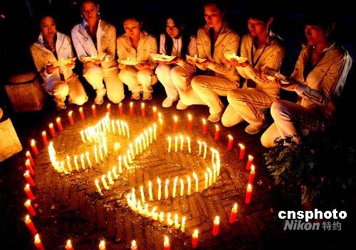 5月17日晚,來自日本、韓國、馬來西亞、泰國、菲律賓以及中國的40名參加2008亞洲超級模特大賽的選手,在廣西興安古老的靈渠放“河船”為中國“5·12”大地震受災(zāi)人民祈福。中新社發(fā) 錢興強 攝