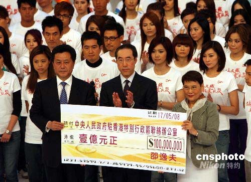 圖:邵逸夫爵士向四川災區(qū)捐款一億港幣
