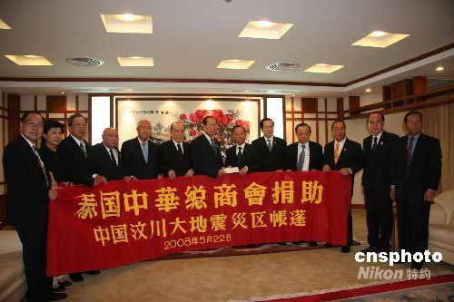 中國(guó)汶川大地震的災(zāi)情一直令泰國(guó)華人華僑關(guān)心,災(zāi)情發(fā)生以來,僑界捐款源源不斷。泰國(guó)中華總商會(huì)5月22日向地震災(zāi)區(qū)捐助兩千多套帳篷,成為泰國(guó)社會(huì)捐助地震災(zāi)區(qū)的第一批物資。這些帳篷將在近日通過中國(guó)駐泰大使館轉(zhuǎn)運(yùn)災(zāi)區(qū)。中新社發(fā) 顧時(shí)宏 攝