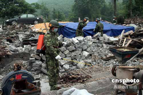 圖:震區(qū)解放軍進村入戶加強衛(wèi)生防疫