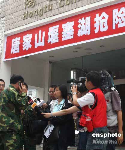 根據氣象預報,25至26日四川地震災區(qū)將出現(xiàn)強降雨,唐家山堰塞湖險情嚴峻,25日中午,救災部隊高級將領(左)在綿陽指揮部用手機通話布置最新應急方案。中新社發(fā) 趙振清 攝