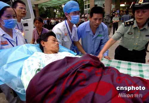 5月25日傍晚,24名四川地震災(zāi)區(qū)重傷員從成都乘坐航班抵達福州后隨即由救護車隊護送至南京軍區(qū)福州總醫(yī)院僑賓樓接受救治。圖為傷員抵達南京軍區(qū)福州總醫(yī)院后該院醫(yī)護人員全力救治每一位來自四川地震災(zāi)區(qū)的傷員。中新社發(fā) 劉可耕 攝