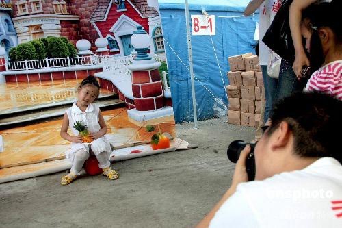5月29日,四川一些影樓經(jīng)營者在都江堰安置點(diǎn)為兒童拍攝紀(jì)念照,美麗的布景和她們居住的救災(zāi)帳篷都被攝入鏡頭。5.12大地震過后第一個(gè)兒童節(jié)前夕,四川一些影樓經(jīng)營者,自發(fā)組成志愿者來到災(zāi)民安置點(diǎn),免費(fèi)為兒童拍攝紀(jì)念照,以特有方式為孩子們奉獻(xiàn)愛心、慶祝節(jié)日。中新社發(fā) 譚超 攝
