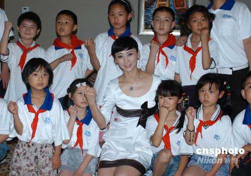 6月2日,89名來自四川北川、彭州、寶興、崇州等地震災(zāi)區(qū)失去親人的兒童飛抵海南三亞,進(jìn)行為期半個(gè)月的“愛心呵護(hù)、陽光行動(dòng)”心靈呵護(hù)之旅。港星翁虹當(dāng)天看望這些來自災(zāi)區(qū)的孩子,還與孩子們一起在當(dāng)晚舉行的瓊川兩地兒童聯(lián)誼晚會(huì)上表演節(jié)目。圖為翁虹與來自災(zāi)區(qū)的孩子們?cè)谝黄。中新社發(fā) 尹海明 攝
