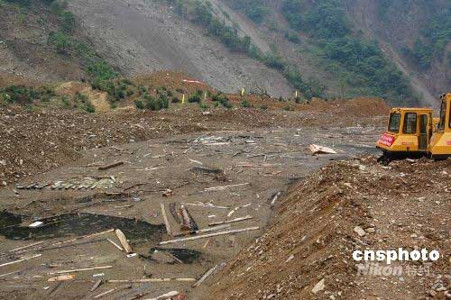 備受矚目的唐家山堰塞湖于7日零點(diǎn)達(dá)到泄流水位高程740米,但是否如期泄流尚不得知。圖為6月6日下午的唐家山堰塞湖泄流槽,水面上堆滿了各種漂浮物。中新社發(fā) 劉建 攝