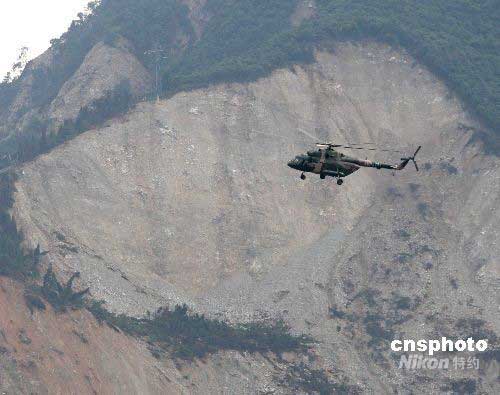 6月12日上午,據(jù)四川省軍區(qū)抗震救災(zāi)指揮部消息,有關(guān)方面已從直升機(jī)失事地點(diǎn)向映秀鎮(zhèn)運(yùn)回第二批飛機(jī)殘骸,目前由成都軍區(qū)陸航團(tuán)的另一架米-171直升機(jī)緊急運(yùn)往成都。中新社發(fā) 賈國(guó)榮 攝