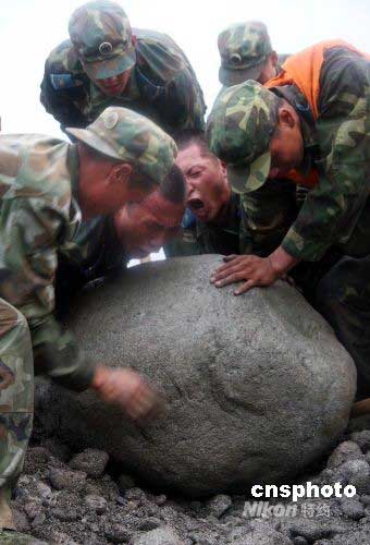圖:救援官兵成功封堵綿遠河大堤潰口(2)