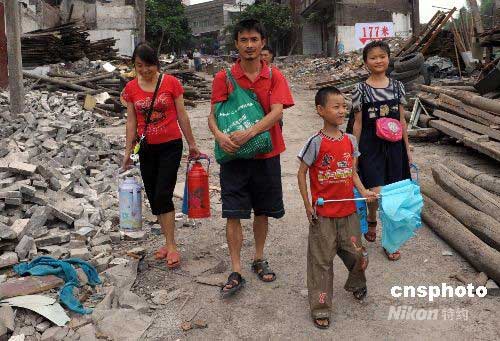 6月14日,重慶萬州城區(qū)三峽工程4期移民搬遷區(qū)域,拆遷工作正常進(jìn)行,一家4口人走在177米水位線下的拆遷區(qū)域中。6月15日,奧運(yùn)火炬將來到三峽庫(kù)區(qū)重慶萬州傳遞。中新社發(fā) 廖攀 攝
