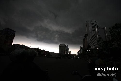 2008年6月16日下午,廣東佛山市禪城區(qū)上空烏云密布,白晝?nèi)缫,隨即降下暴雨。中新社發(fā) 春添 攝