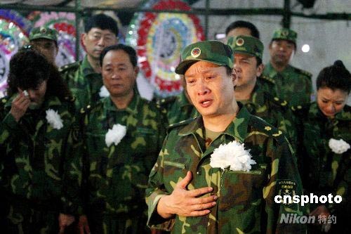 6月22日,閻維文、黃宏、夢(mèng)歌、蔡國慶、白雪等著名軍旅藝術(shù)家來到四川都江堰悼念抗震救災(zāi)烈士武文斌。圖為閻維文在烈士的遺像前清唱一首《心肝情愿》告慰英靈。中新社發(fā) 曾憲平 攝