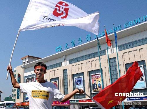 圖:奧運火炬大慶傳遞 市民高呼“中國加油”