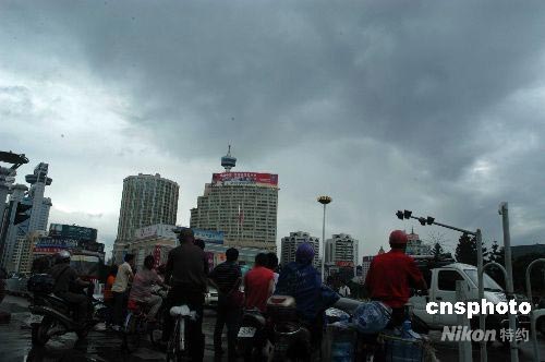 2008年7月18日,受今年第7號(hào)臺(tái)風(fēng)“海鷗”影響福州上空烏云密布,天空中下著雨。據(jù)福建省氣象臺(tái)報(bào)告,今年第7號(hào)臺(tái)風(fēng)“海鷗”,將對(duì)福建省中北部沿海造成較大影響,并可能于當(dāng)日下午到夜間在福州連江與浙江溫嶺之間沿海登陸。中新社發(fā) 張 斌 攝