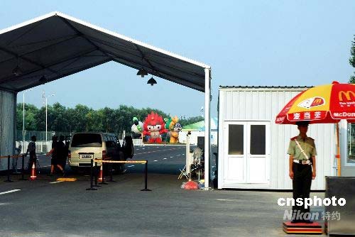 7月22日,北京奧運(yùn)村采取嚴(yán)密的安全封閉措施,防止閑雜人員進(jìn)入,謝絕游客參觀,保證將要到來的奧運(yùn)會(huì)順利進(jìn)行。中新社發(fā) 張雙雙 攝