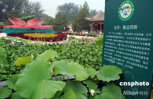 7月24日,兩名女孩在圓明園遺址公園內的荷花旁邊留影。奧運臨近,在圓明園第二十二屆喜迎綠色奧運荷花節(jié)期間,絢麗多姿的各類荷花品種達260多個品種,令前來游園的中外游客流連忘返。 中新社發(fā) 楊慧峰 攝