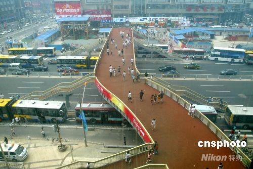 近日,北京市目前最寬的人行過(guò)街天橋在中關(guān)村核心商圈建成并正式投入使用,到中國(guó)高新電子產(chǎn)品集散地——中關(guān)村選購(gòu)物品的顧客今后不必再穿行車水馬龍的中關(guān)村大街。人行過(guò)街天橋的建成將有效解決中關(guān)村地區(qū)人車混行、交通擁堵和行人過(guò)街不便的狀況,緩解當(dāng)?shù)亟煌▔毫ΑV行律绨l(fā) 富田 攝