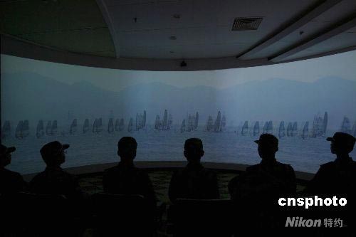 北京奧運會開幕日益臨近,承擔奧帆賽安保任務的青島邊防支隊官兵利用值勤訓練間隙參觀奧帆中心展館,了解奧運會及奧帆賽的相關知識。第29屆奧運會帆船帆板比賽將于2008年8月9日至23日在青島國際帆船中心及周邊水域舉行。 中新社發(fā) 王瑤 攝