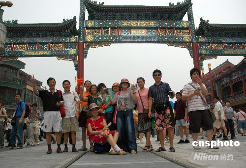 8月7日,北京前門大街在經(jīng)歷一年多時間的保護(hù)、修繕后正式開街,F(xiàn)有12家商戶開張營業(yè),預(yù)計奧運(yùn)會之后將全面開市。開街后,前門大街將實(shí)行24小時全時段全覆蓋精細(xì)化城管執(zhí)法模式。當(dāng)日眾多游人前來參觀前門大街。中新社發(fā) 張雙雙 攝