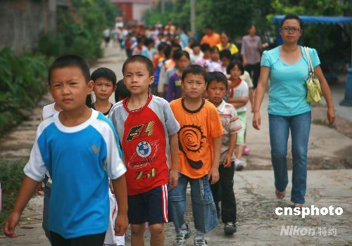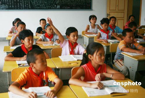 8月25日,來自四川省汶川縣銀杏鄉(xiāng)銀杏小學(xué)和威州鎮(zhèn)七盤溝小學(xué)380名學(xué)生在四川丹棱縣正式復(fù)課。兩所學(xué)校的師生將在當?shù)乜鞓飞顚W(xué)習(xí)3年。地震發(fā)生后,汶川縣銀杏和七盤溝小學(xué)校園遭到嚴重毀毀,眉山市華川中等職業(yè)學(xué)校無償為災(zāi)區(qū)的孩子們提供了4000多平方米的教學(xué)場所。中新社發(fā) 劉忠俊 攝