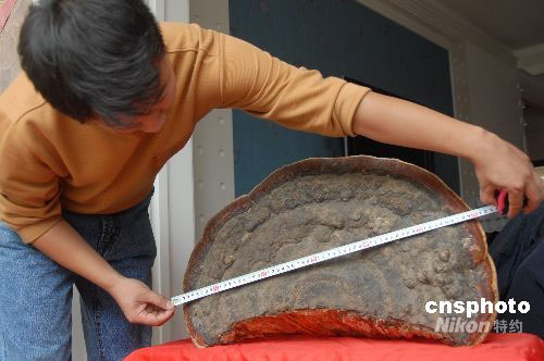 9月1日,黑龍江海林市民李先生家中,一株直徑61厘米、寬42厘米、重9.5斤的巨型野生靈芝。據(jù)李先生介紹經(jīng)省醫(yī)藥專家鑒定,認(rèn)為形體這么大的野生靈芝最少也得生長(zhǎng)百年以上,而且品相這么好實(shí)屬罕見。中新社發(fā) 高福貴 攝