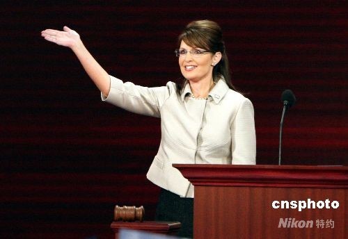 美國阿拉斯加州州長薩拉·佩林,九月三日在明尼蘇達(dá)州州府圣保羅舉行的共和黨全國代表大會上發(fā)表接受提名演說,成為共和黨歷史上首位女副總統(tǒng)候選人。中新社發(fā) 李靜 攝