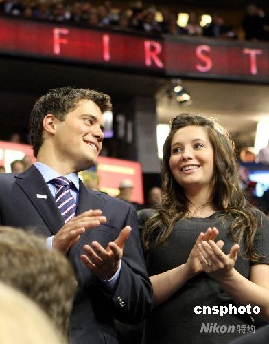 佩林的女兒、懷孕5個(gè)月的布里斯托爾和未婚夫,在共和黨大會現(xiàn)場為其鼓氣。