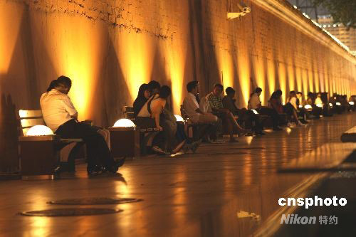 九月十四日,成雙成對(duì)的青年情侶依偎在北京皇城根下,共賞中秋明月,共度美好時(shí)光。中新社發(fā) 史利 攝