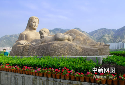 雕塑由甘肅著名的雕塑家何鄂女士創(chuàng)作,北京雕塑廠于1986年4月30日雕成,系一長(zhǎng)6米,寬2.2米,高2.6米的花崗巖圓雕,總重40余噸。由“母親”和一“男嬰”組成構(gòu)圖。