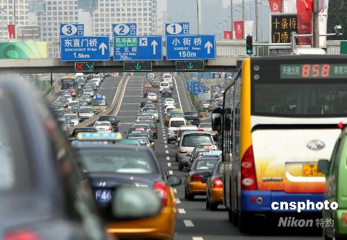 九月二十一日,北京市機(jī)動(dòng)車單雙號(hào)限行解禁,北三環(huán)路車水馬龍。為緩解奧運(yùn)會(huì)、殘奧會(huì)期間的交通壓力,自七月二十日至九月二十日期間,北京市實(shí)施了機(jī)動(dòng)車單雙號(hào)限行措施。中新社發(fā) 史利 攝