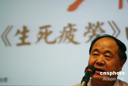 九月二十一日,中國內(nèi)地著名作家莫言在香港中央圖書館暢談《生死疲勞》創(chuàng)作過程。這部小說日前在香港獲得第二屆“紅樓夢獎”!凹t樓夢獎”兩年一評,旨在獎勵世界各地出版成書的杰出華文長篇小說作品。中新社發(fā) 武仲林 攝
