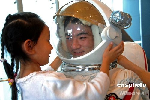 9月23日,“中國(guó)航天員體驗(yàn)營(yíng)”啟動(dòng)儀式在北京天文館舉行。這場(chǎng)旨在拉近航天科技與普通大眾距離的航天體驗(yàn)活動(dòng)拉開(kāi)序幕,給翹首企盼“神七”太空漫步的“航天熱”錦上添花,普通公眾也有了一個(gè)當(dāng)“航天員”的機(jī)會(huì)。中新社發(fā) 胡慶明 攝