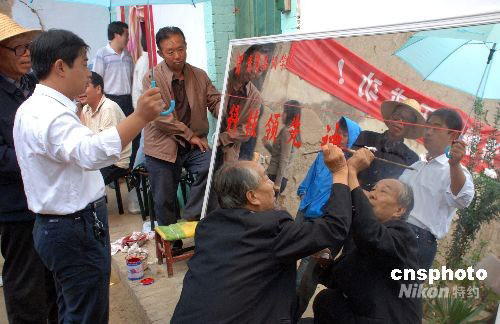 9月25日下午, 在山西運(yùn)城市鹽湖區(qū)安邑街道辦事處楊家卓村景海鵬的老家,前來到賀喜的親戚朋友和當(dāng)?shù)卣斫j(luò)繹不絕。中新社發(fā) 張雷杰 攝