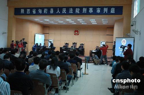 9月27日上午,陜西省安康市旬陽(yáng)縣人民法院公開(kāi)開(kāi)庭審理“華南虎照”造假者周正龍涉嫌詐騙罪和非法持有彈藥罪一案。中新社發(fā) 鄧浩軍 攝