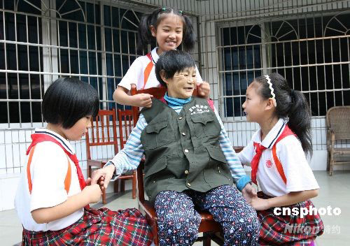 10月7日,由四川省廣安市廣安區(qū)東方小學的10多名少先隊員組成的愛心志愿者小分隊來到濃洄敬老院,看望生活在這里的40多位老人,為老人送上節(jié)日禮物,為老人打掃房間,陪老人聊天、散步,為他們送去重陽節(jié)的祝福,陪伴他們度過災后首個重陽節(jié)。 中新社發(fā) 杜修戰(zhàn) 攝