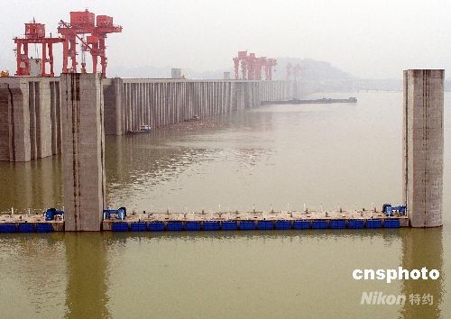 2008年10月7日,經(jīng)過近10天持續(xù)不斷地蓄水,三峽工程大壩壩前水位達到155.5米,并保持在該水位以上運行,實現(xiàn)了2008年汛后先期蓄水至156米水位的目標(biāo),是否向175米水位抬升尚需再檢測并研究三峽大壩運行情況、三峽庫區(qū)地質(zhì)災(zāi)害狀況等之后再做決定。按設(shè)計要求,三峽工程分135米、156米、175米三個水位進行蓄水。此前,三峽工程已于2006年、2007年兩次蓄至156米水位高程。中新社發(fā) 劉君鳳 攝