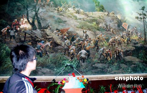 亞洲最大的油畫亮相江西井岡山。該油畫名為《黃洋界保衛(wèi)戰(zhàn)》,長(zhǎng)十二米,寬八米,由魯迅美術(shù)學(xué)院的四名教授歷時(shí)二個(gè)月精心創(chuàng)作而成。作品反映了一九二八年八月,紅軍憑險(xiǎn)據(jù)守井岡山黃洋界哨口粉碎進(jìn)行第二次“會(huì)剿”的國(guó)民黨軍的歷史,描繪了一百多個(gè)人物,色彩鮮艷,立體感極強(qiáng)。 中新社發(fā) 段長(zhǎng)征 攝